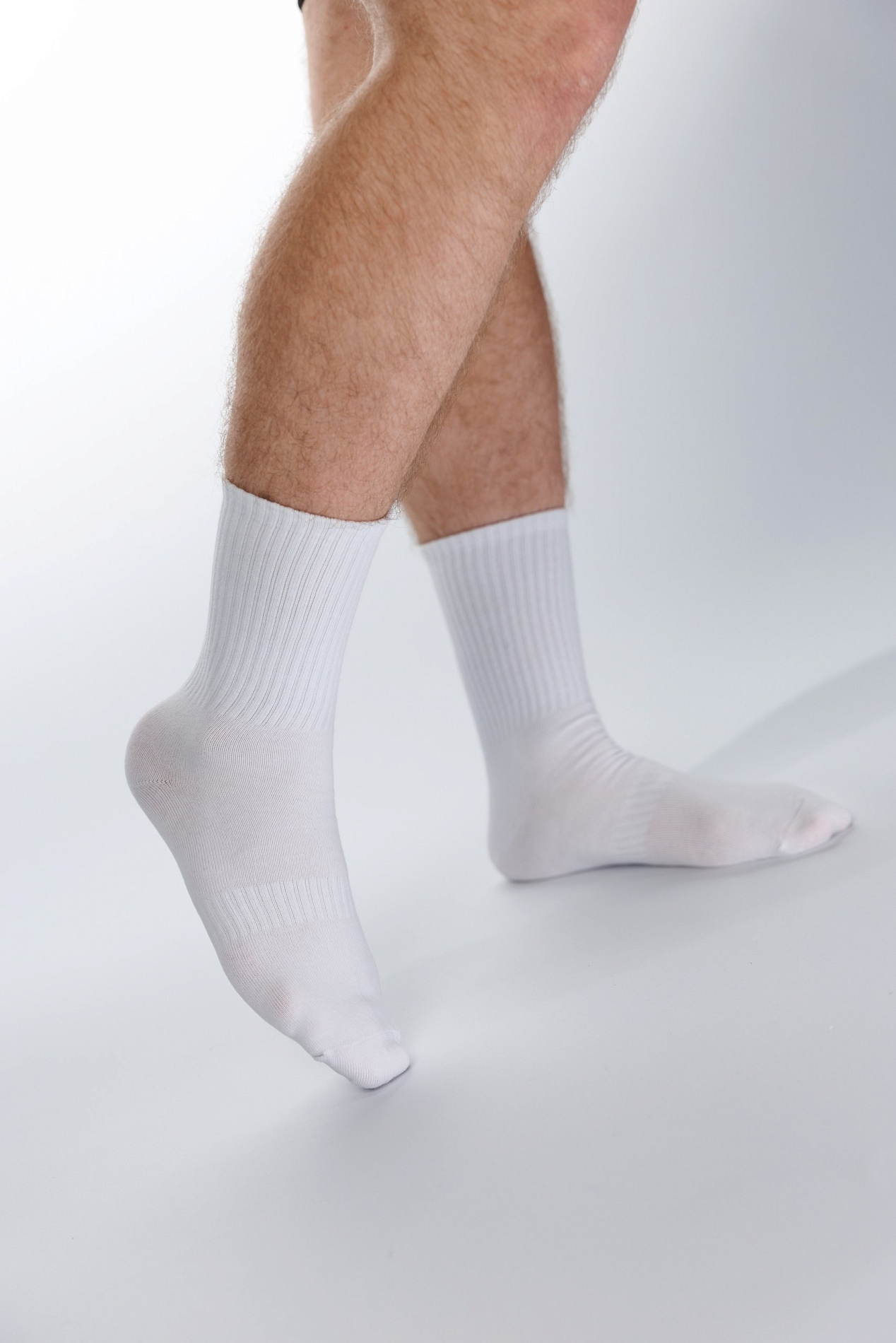Самая базовая база: белые носки. Длинные — самое то для кроссовок.
