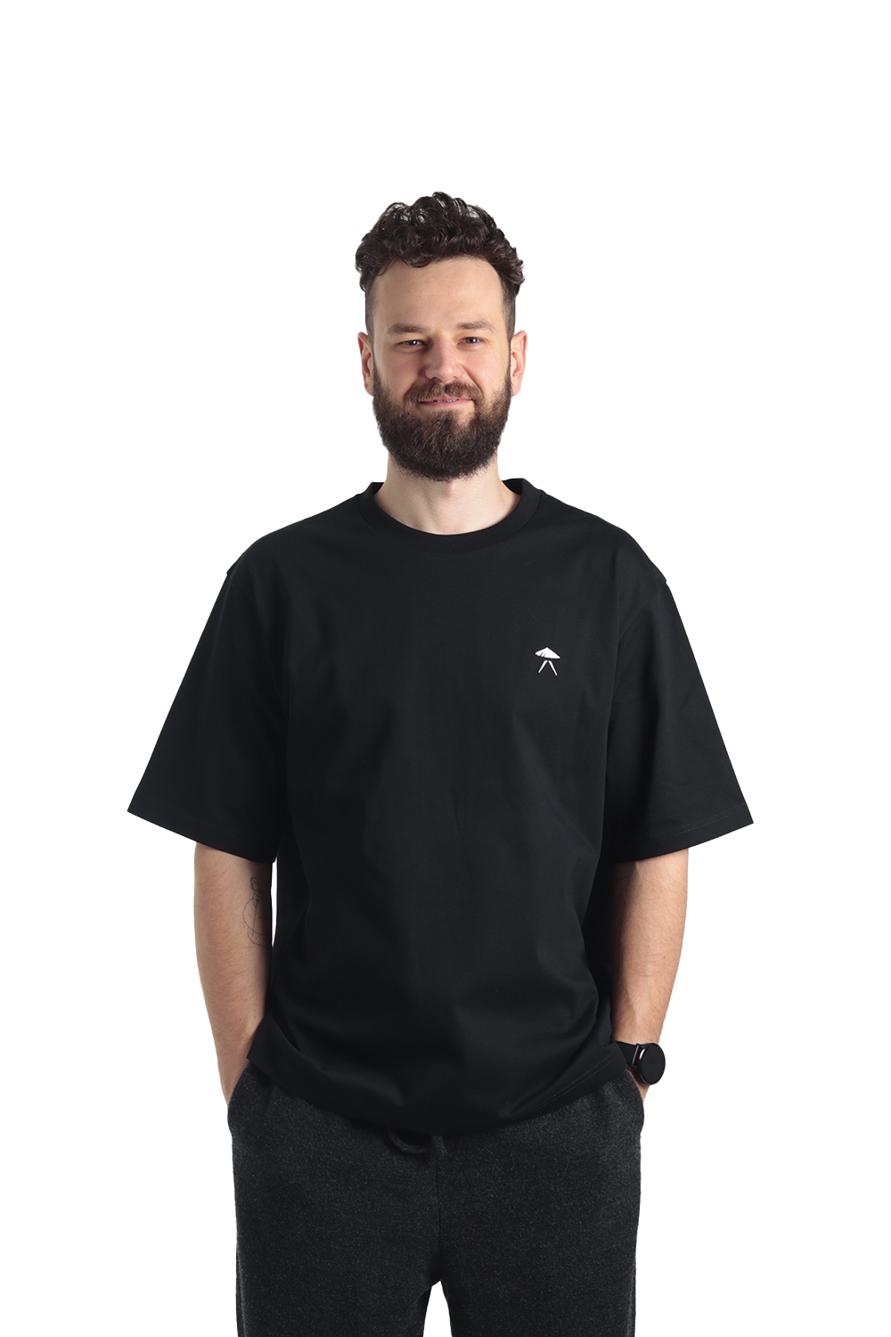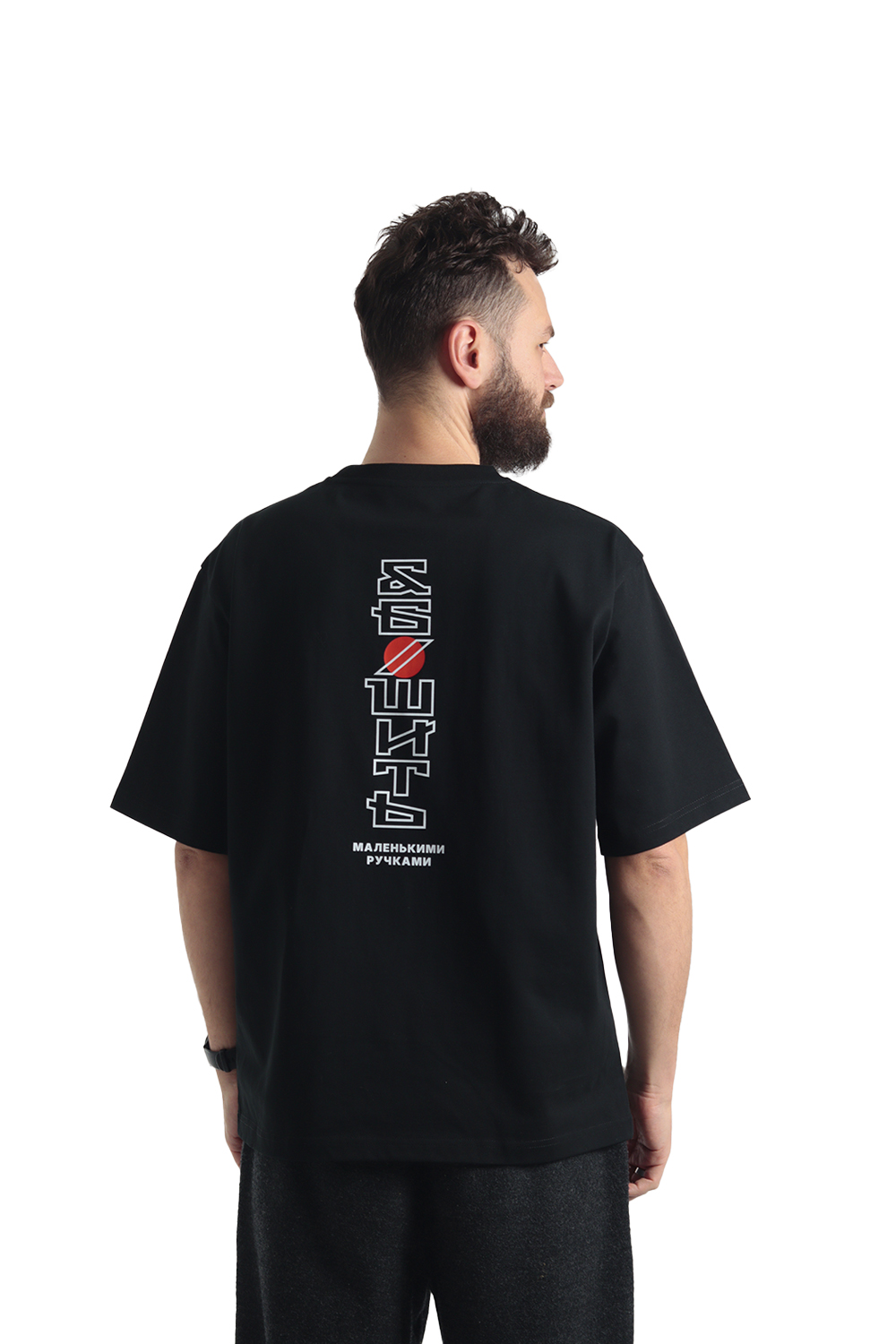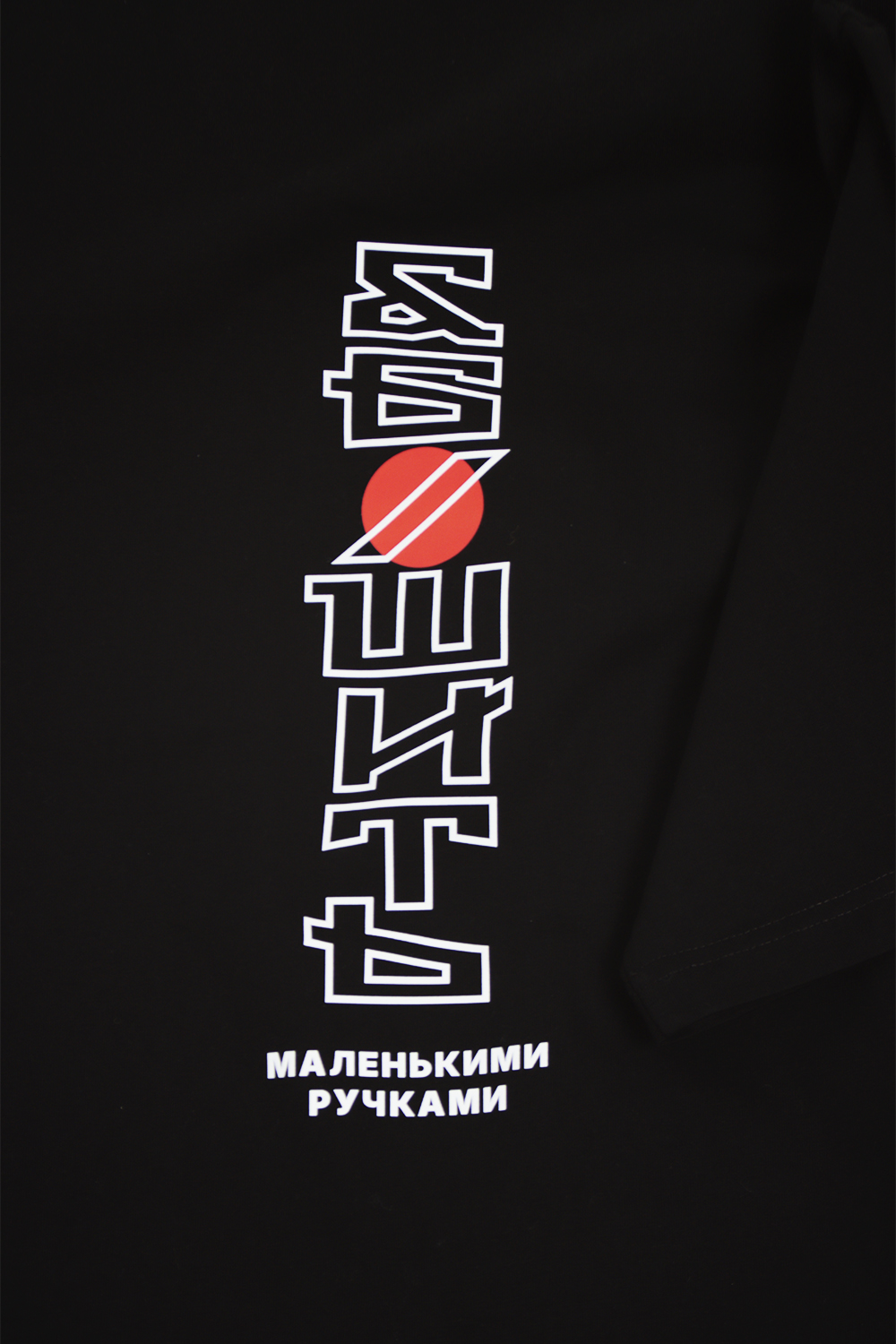 Дизайн выполнен только в черном цвете. Состав — 100% премиальный хлопок. Принт — ДТФ, а значит, держаться будет до победного.
