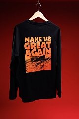 Лонгслив из 100% хлопка свободного кроя. В черном цвете с новым ярко-оранжевым дизайном на спине. Тираж очень ограничен. Успевайте забрать свой размер.