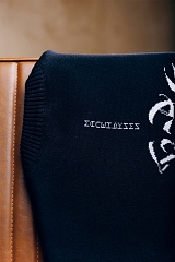 Выполнен в самом популярном дизайне «Стасяо». Как обычно, на груди расположена шляпка. На спине — «Е**шить маленькими ручками». Собственно, маленькими ручками этот свитер и был зае**шен.